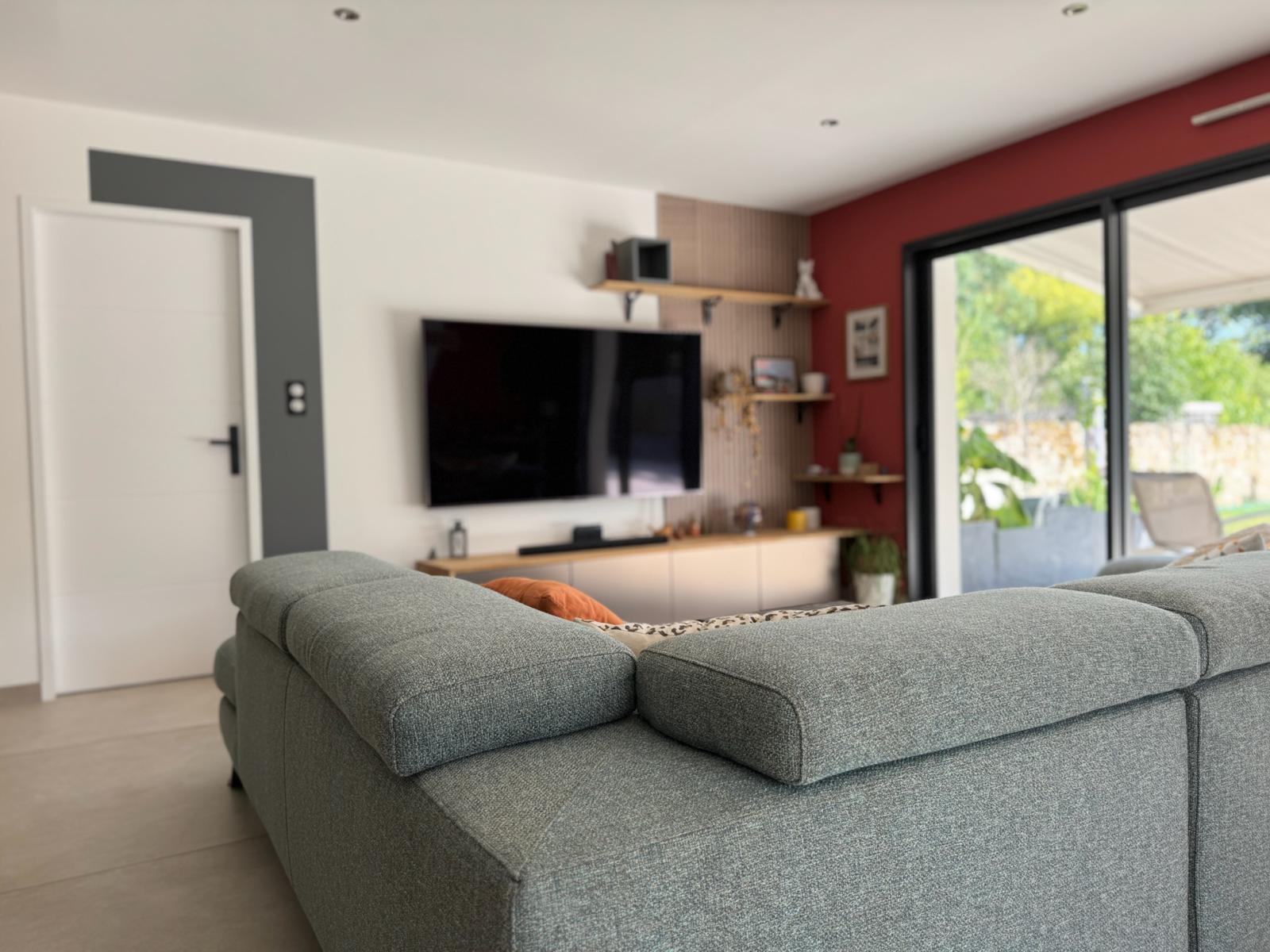 A la suite de 10 mois de travaux , les propriétaires ont pu prendre possession des lieux et achever les dernières finitions qu’ils s’étaient gardés . Une maison d’une belle envergure avec ces 137m² habitable reparti entre le rez-de-chaussée et son étage qui propose une double fonctionnalité puisqu’il sert également de préau dans cette configuration. Elle dispose ainsi de 3 chambres + 1 suite parentale avec un dressing et sa salle d’eau, une belle pièce à vivre ouverte sur un jardin exposé SUD ☀️, d’un cellier et d’une salle de bain et n’oublions pas la terrasse couverte qui apporte un vrai plus à l’espace à vivre grâce à l’installation d’une baie d’angle à galandage . Le tout implanté sur un terrain de 1250 m²